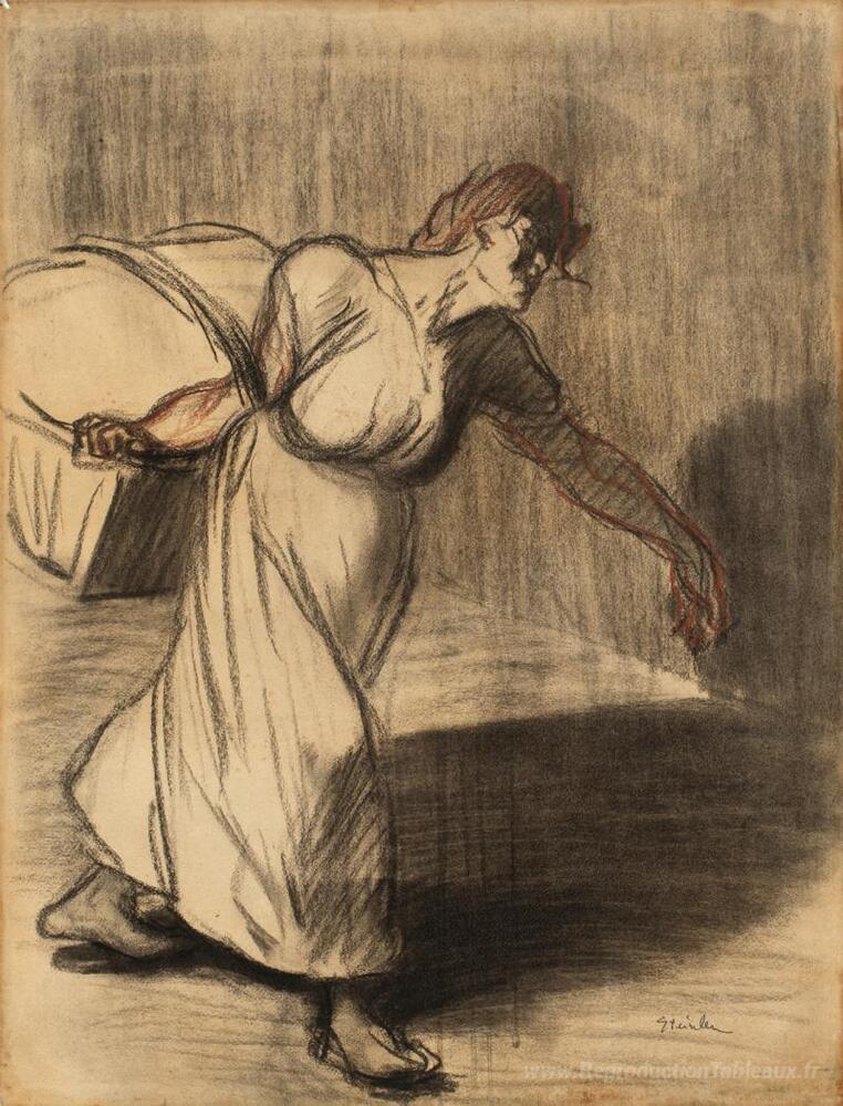 Nous vous proposons une reproduction artisanale sur toile du célèbre tableau 'Blanchisseuse' de Theophile Steinlen, provenant du Musée de la Reproduction.