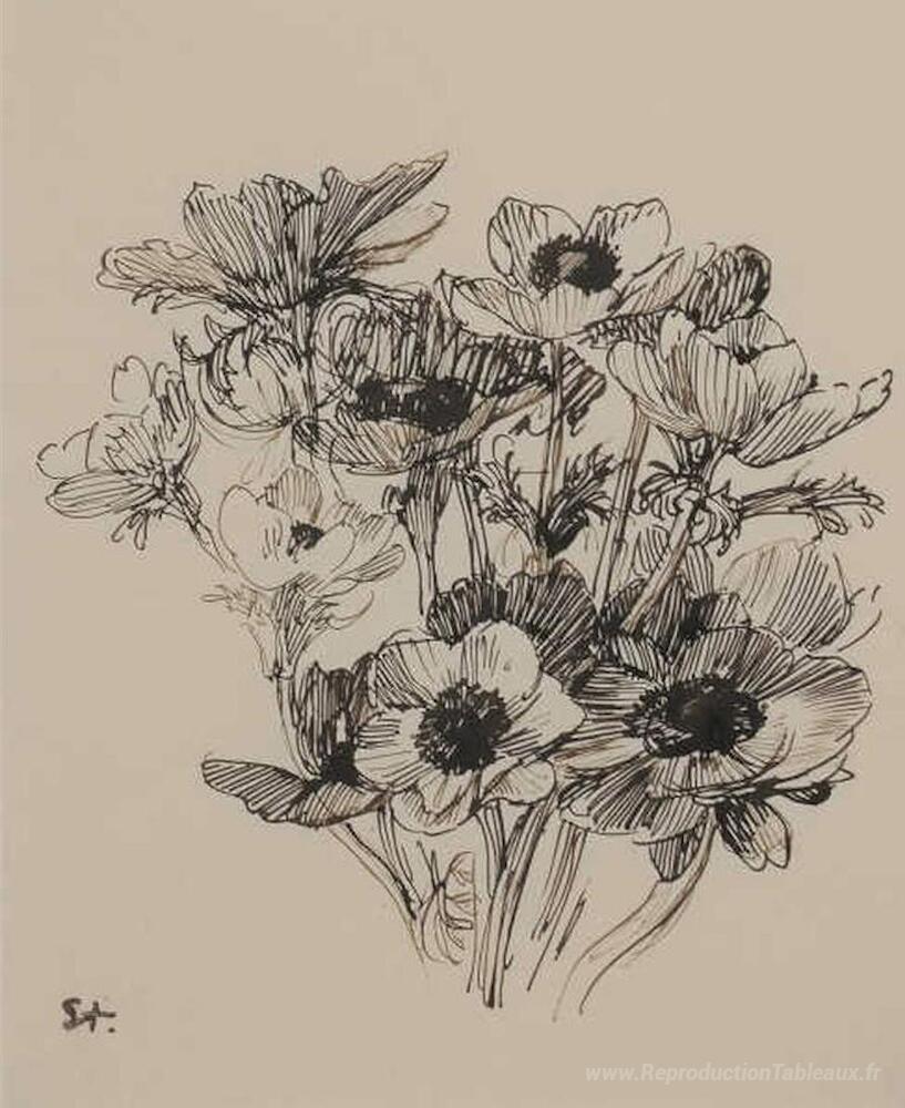 Nous vous proposons une reproduction artisanale sur toile du célèbre tableau 'Bouquet de Fleurs' de Theophile Steinlen, provenant du Musée de la Reproduction.