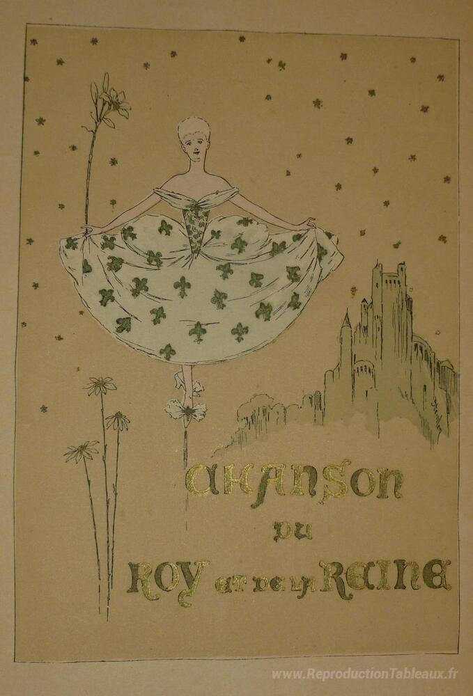Nous vous proposons une reproduction artisanale sur toile du célèbre tableau 'Chanson du Roy et de la Reine' de Theophile Steinlen, provenant du Musée de la Reproduction.