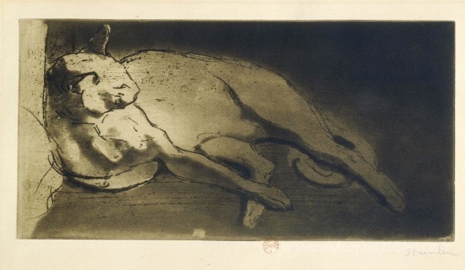 Nous vous proposons une reproduction artisanale sur toile du célèbre tableau 'Chat endormi' de Theophile Steinlen, provenant du Musée de la Reproduction.