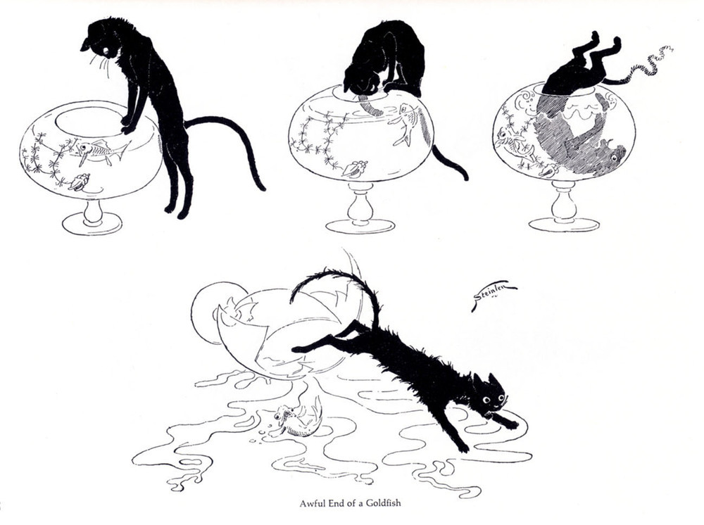 Nous vous proposons une reproduction artisanale sur toile du célèbre tableau 'Chat et poisson rouge' de Theophile Steinlen, provenant du Musée de la Reproduction.