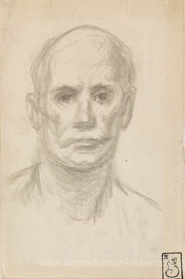 Nous vous proposons une reproduction artisanale sur toile du célèbre tableau 'Chef de l'homme' de Theophile Steinlen, provenant du Musée de la Reproduction.