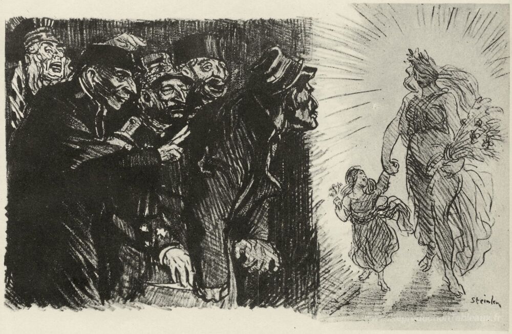 Nous vous proposons une reproduction artisanale sur toile du célèbre tableau 'Comme En Quatre-Vingt Treize' de Theophile Steinlen, provenant du Musée de la Reproduction.
