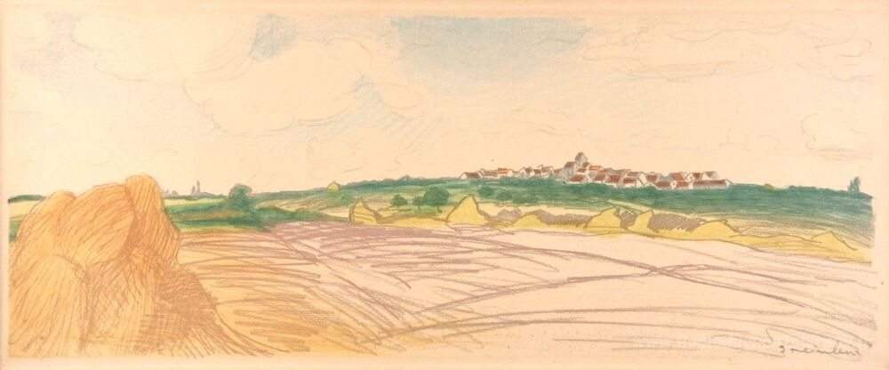 Nous vous proposons une reproduction artisanale sur toile du célèbre tableau 'Couleur Litho Paysage' de Theophile Steinlen, provenant du Musée de la Reproduction.