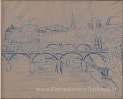 Nous vous proposons une reproduction artisanale sur toile du célèbre tableau 'Croquis de Paris' de Theophile Steinlen, provenant du Musée de la Reproduction.