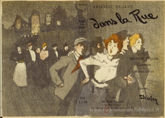Nous vous proposons une reproduction artisanale sur toile du célèbre tableau 'Dans La Rue' de Theophile Steinlen, provenant du Musée de la Reproduction.