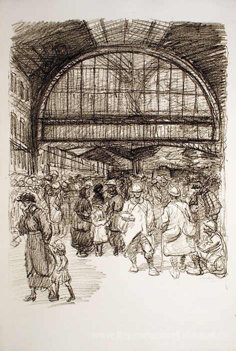 Nous vous proposons une reproduction artisanale sur toile du célèbre tableau 'Dans le hall' de Theophile Steinlen, provenant du Musée de la Reproduction.