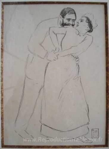 Nous vous proposons une reproduction artisanale sur toile du célèbre tableau 'Dessin préliminaire de l'Eugénie' de Theophile Steinlen, provenant du Musée de la Reproduction.