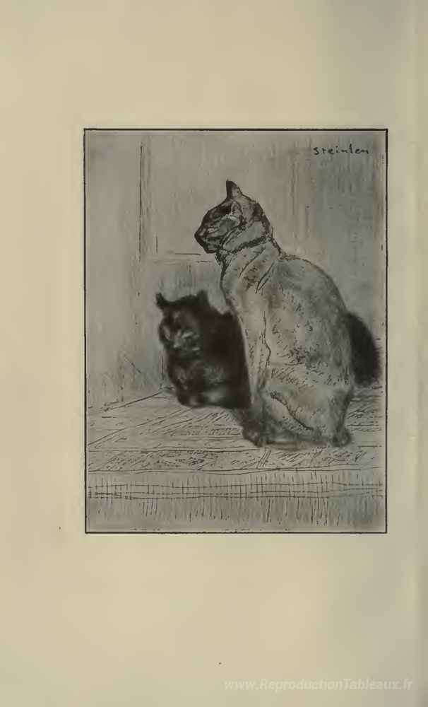 Nous vous proposons une reproduction artisanale sur toile du célèbre tableau 'Deux chats' de Theophile Steinlen, provenant du Musée de la Reproduction.