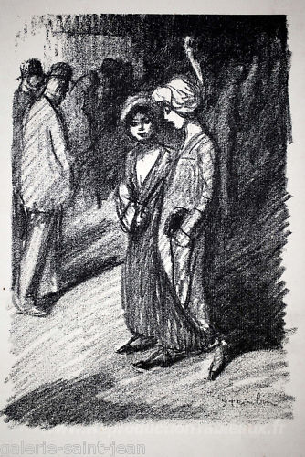 Nous vous proposons une reproduction artisanale sur toile du célèbre tableau 'Deux femmes' de Theophile Steinlen, provenant du Musée de la Reproduction.