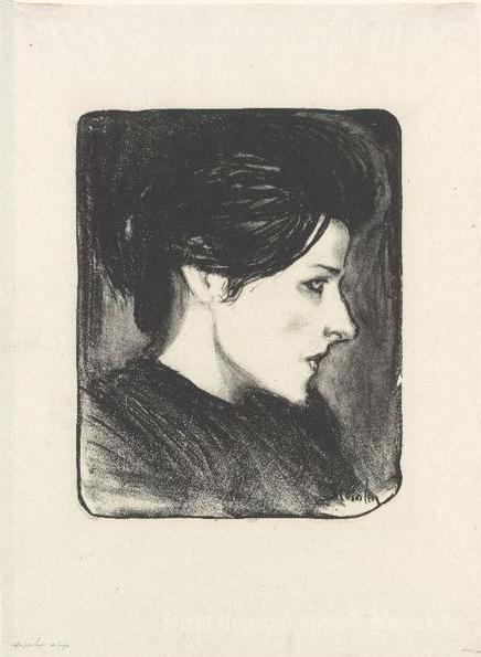 Nous vous proposons une reproduction artisanale sur toile du célèbre tableau 'Digitare Populaire du Profil' de Theophile Steinlen, provenant du Musée de la Reproduction.