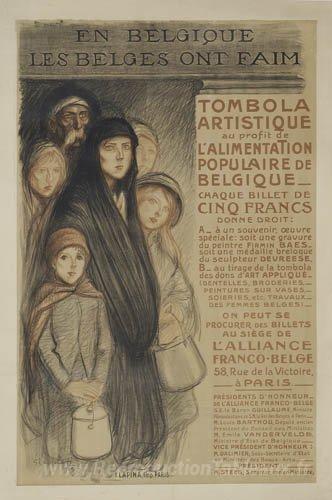 Nous vous proposons une reproduction artisanale sur toile du célèbre tableau 'En belges les Belges en faim' de Theophile Steinlen, provenant du Musée de la Reproduction.