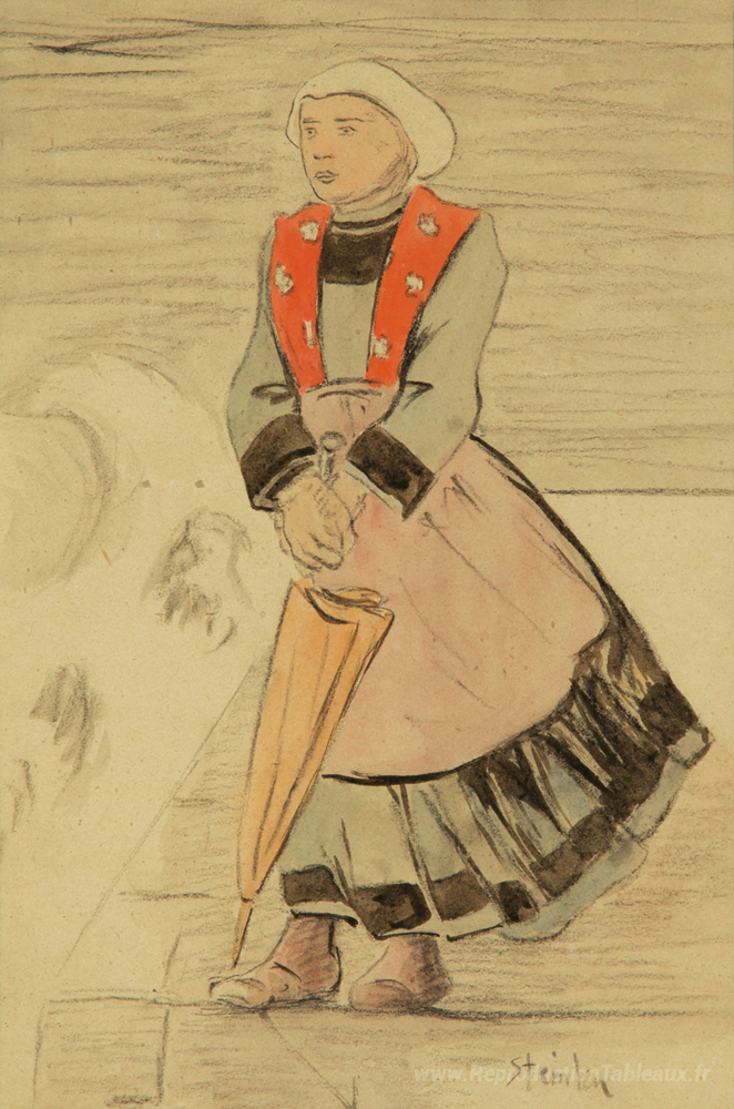Nous vous proposons une reproduction artisanale sur toile du célèbre tableau 'En partance - dessin préliminaire' de Theophile Steinlen, provenant du Musée de la Reproduction.