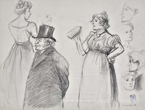 Nous vous proposons une reproduction artisanale sur toile du célèbre tableau 'Figures Etude des' de Theophile Steinlen, provenant du Musée de la Reproduction.