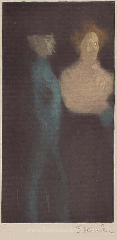 Nous vous proposons une reproduction artisanale sur toile du célèbre tableau 'Fille et Soutéeur' de Theophile Steinlen, provenant du Musée de la Reproduction.
