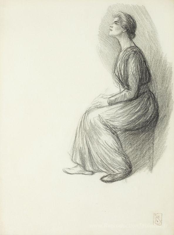Nous vous proposons une reproduction artisanale sur toile du célèbre tableau 'Jeune Femme Asise' de Theophile Steinlen, provenant du Musée de la Reproduction.