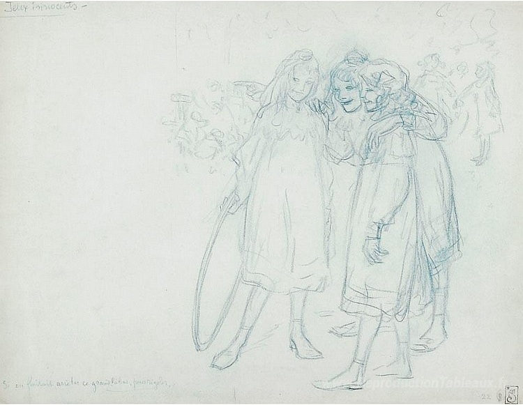 Nous vous proposons une reproduction artisanale sur toile du célèbre tableau 'Jeux Innocenti' de Theophile Steinlen, provenant du Musée de la Reproduction.