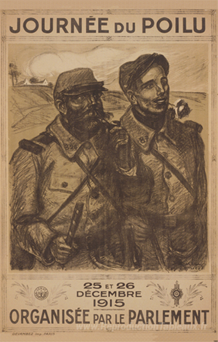 Nous vous proposons une reproduction artisanale sur toile du célèbre tableau 'Journee du Poilu' de Theophile Steinlen, provenant du Musée de la Reproduction.