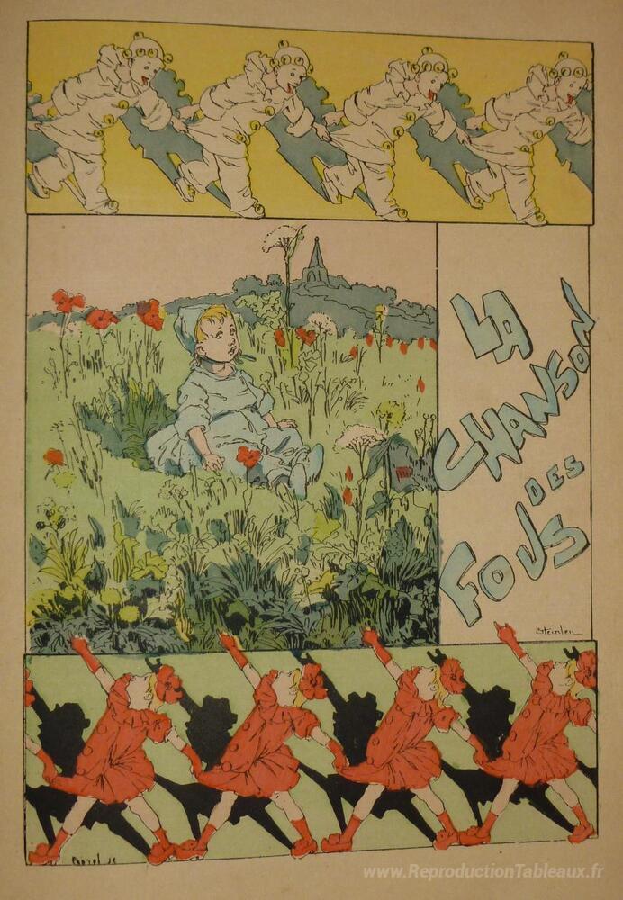 Nous vous proposons une reproduction artisanale sur toile du célèbre tableau 'La Chanson des Fous' de Theophile Steinlen, provenant du Musée de la Reproduction.