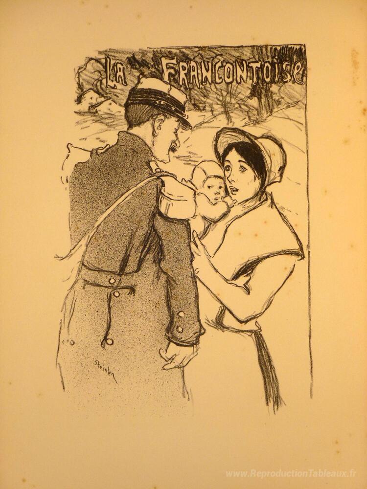 Nous vous proposons une reproduction artisanale sur toile du célèbre tableau 'La Francontoise' de Theophile Steinlen, provenant du Musée de la Reproduction.