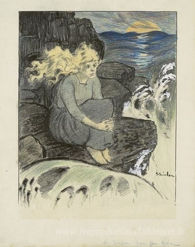 Nous vous proposons une reproduction artisanale sur toile du célèbre tableau 'La Sirene' de Theophile Steinlen, provenant du Musée de la Reproduction.