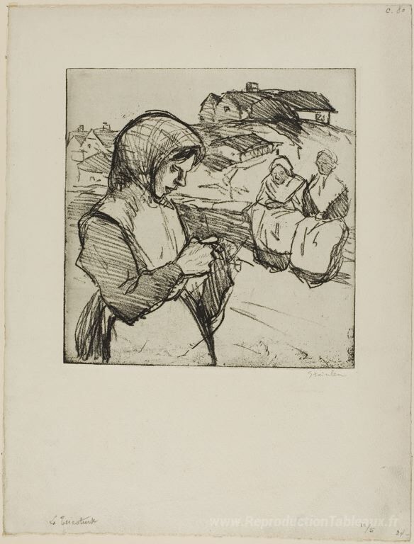 Nous vous proposons une reproduction artisanale sur toile du célèbre tableau 'La TRICOTEUSE' de Theophile Steinlen, provenant du Musée de la Reproduction.