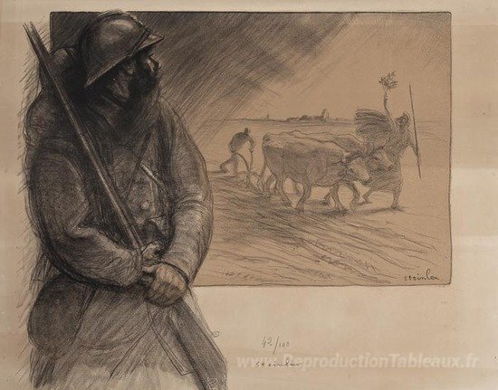 Nous vous proposons une reproduction artisanale sur toile du célèbre tableau 'La Triennale' de Theophile Steinlen, provenant du Musée de la Reproduction.