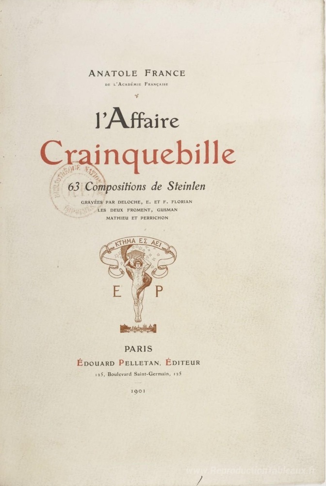 Nous vous proposons une reproduction artisanale sur toile du célèbre tableau 'L'affaire crainquebille couverture' de Theophile Steinlen, provenant du Musée de la Reproduction.