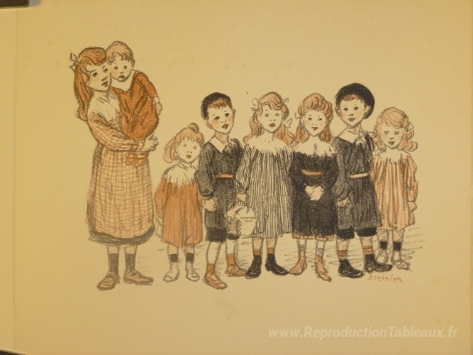 Nous vous proposons une reproduction artisanale sur toile du célèbre tableau 'L'art un école' de Theophile Steinlen, provenant du Musée de la Reproduction.