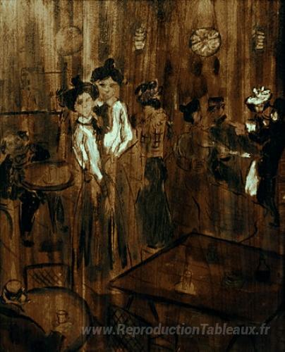 Nous vous proposons une reproduction artisanale sur toile du célèbre tableau 'Le Bar' de Theophile Steinlen, provenant du Musée de la Reproduction.