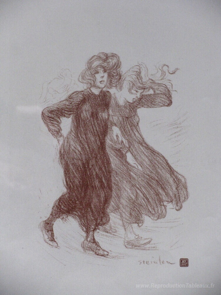 Nous vous proposons une reproduction artisanale sur toile du célèbre tableau 'Le coup de ventilateur' de Theophile Steinlen, provenant du Musée de la Reproduction.
