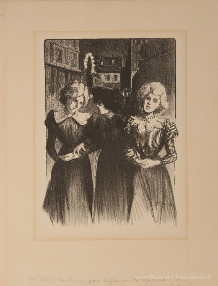 Nous vous proposons une reproduction artisanale sur toile du célèbre tableau 'Le Mai d'Amour' de Theophile Steinlen, provenant du Musée de la Reproduction.