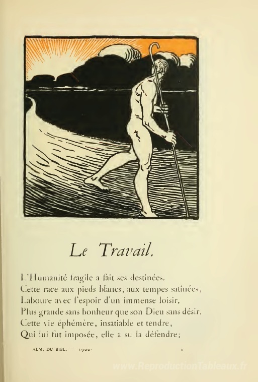 Nous vous proposons une reproduction artisanale sur toile du célèbre tableau 'Le Travail' de Theophile Steinlen, provenant du Musée de la Reproduction.