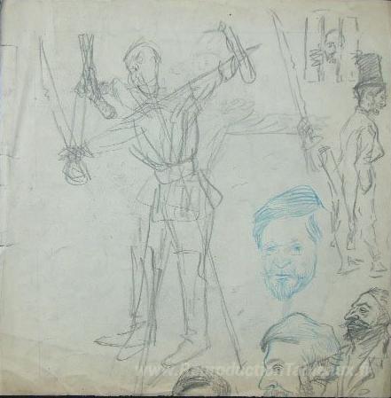 Nous vous proposons une reproduction artisanale sur toile du célèbre tableau 'L'Epouvantail-Bourgeois' de Theophile Steinlen, provenant du Musée de la Reproduction.