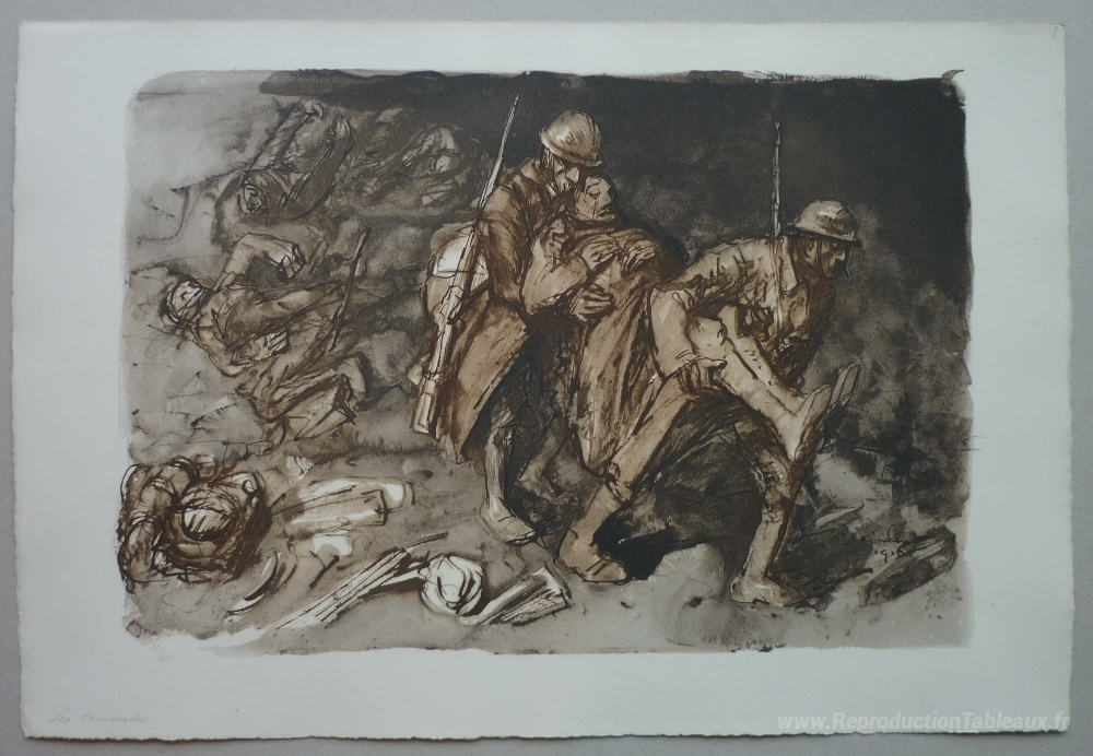 Nous vous proposons une reproduction artisanale sur toile du célèbre tableau 'Les Camarades' de Theophile Steinlen, provenant du Musée de la Reproduction.