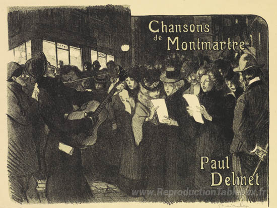 Nous vous proposons une reproduction artisanale sur toile du célèbre tableau 'Les Chanteurs des Rues' de Theophile Steinlen, provenant du Musée de la Reproduction.
