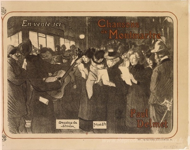 Nous vous proposons une reproduction artisanale sur toile du célèbre tableau 'Les Chanteurs des Rues' de Theophile Steinlen, provenant du Musée de la Reproduction.