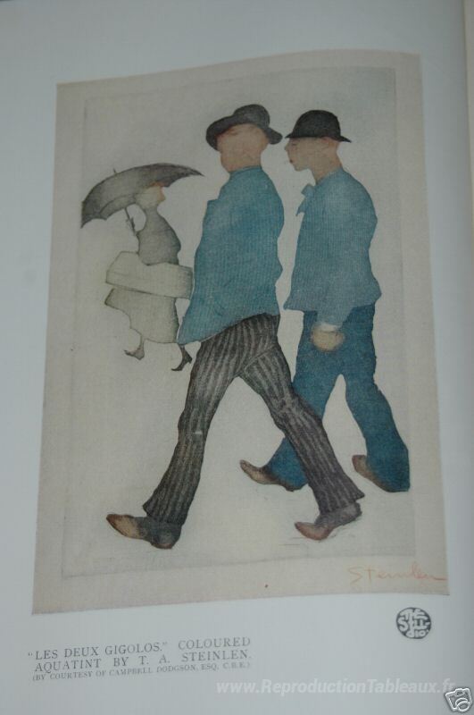 Nous vous proposons une reproduction artisanale sur toile du célèbre tableau 'Les Deux Gigolos' de Theophile Steinlen, provenant du Musée de la Reproduction.