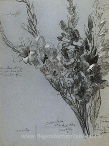Nous vous proposons une reproduction artisanale sur toile du célèbre tableau 'Les Glaieuls' de Theophile Steinlen, provenant du Musée de la Reproduction.