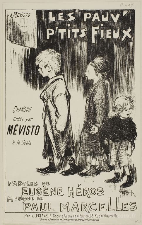 Nous vous proposons une reproduction artisanale sur toile du célèbre tableau 'Les Pauv - Petits Fieux' de Theophile Steinlen, provenant du Musée de la Reproduction.