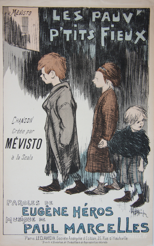 Nous vous proposons une reproduction artisanale sur toile du célèbre tableau 'Les Petits Fieux Pauv-' de Theophile Steinlen, provenant du Musée de la Reproduction.