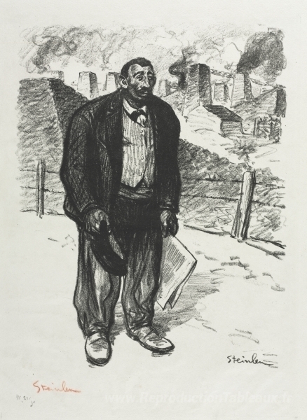 Nous vous proposons une reproduction artisanale sur toile du célèbre tableau 'L'Honnete Ouvrier' de Theophile Steinlen, provenant du Musée de la Reproduction.