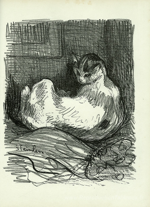 Nous vous proposons une reproduction artisanale sur toile du célèbre tableau 'Mère chat' de Theophile Steinlen, provenant du Musée de la Reproduction.