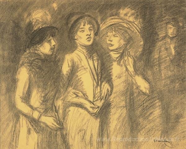 Nous vous proposons une reproduction artisanale sur toile du célèbre tableau 'Médinettes' de Theophile Steinlen, provenant du Musée de la Reproduction.