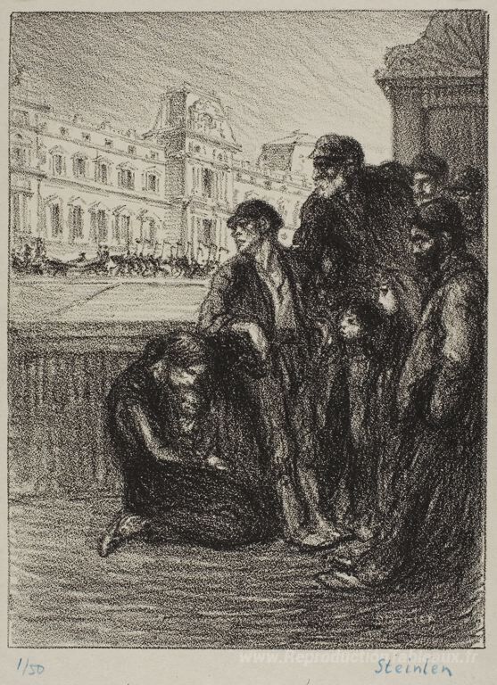 Nous vous proposons une reproduction artisanale sur toile du célèbre tableau 'Miserre et splendeur' de Theophile Steinlen, provenant du Musée de la Reproduction.