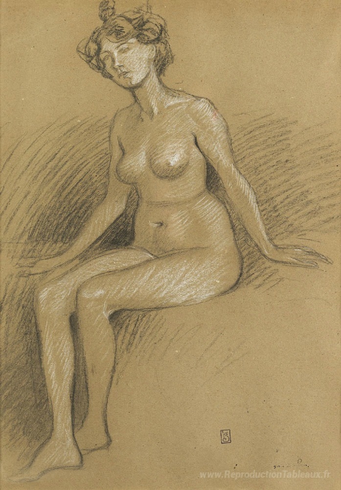 Nous vous proposons une reproduction artisanale sur toile du célèbre tableau 'Nu' de Theophile Steinlen, provenant du Musée de la Reproduction.