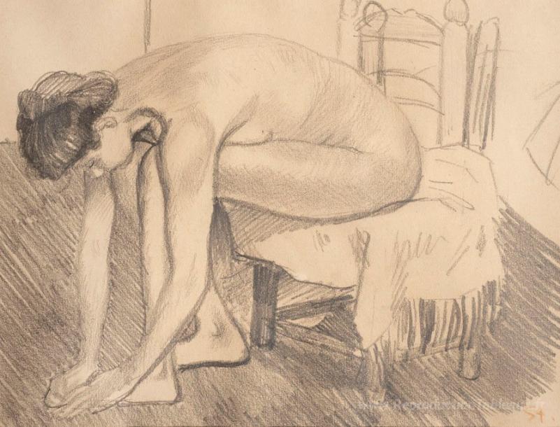 Nous vous proposons une reproduction artisanale sur toile du célèbre tableau 'Nu' de Theophile Steinlen, provenant du Musée de la Reproduction.