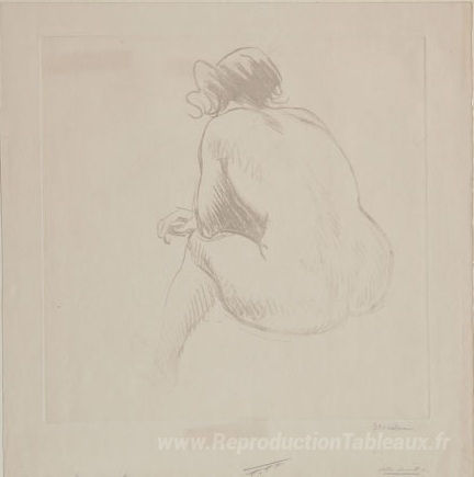 Nous vous proposons une reproduction artisanale sur toile du célèbre tableau 'Nu par derrière' de Theophile Steinlen, provenant du Musée de la Reproduction.