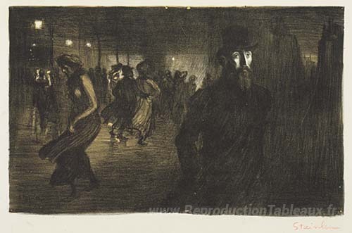 Le style unique de Theophile Steinlen s'illustre dans l'utilisation subtile des lumières et des ombres, créant une ambiance à la fois romantique et mélancolique. Les techniques de la peinture à l'huile permettent de donner profondeur et texture à chaque scène, transformant ainsi votre espace de vie en un véritable sanctuaire artistique. Offrez-vous l'élégance et le charme des nuits parisiennes avec cette reproduction qui saura sublimer vos murs et enchanter vos invités.