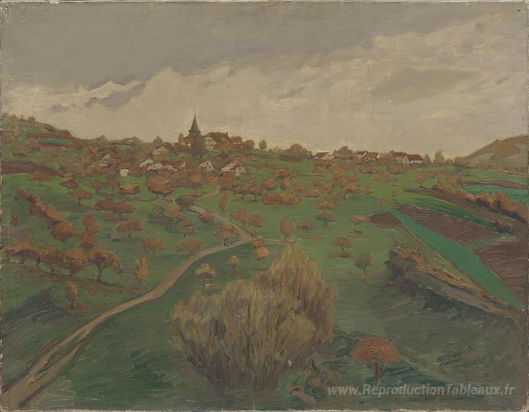 Nous vous proposons une reproduction artisanale sur toile du célèbre tableau 'Paysage de Belmont' de Theophile Steinlen, provenant du Musée de la Reproduction.